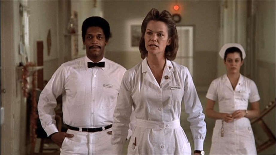 This comes to a head at the film’s climax, when McMurphy seems to think that Billy (Dourif, a full quarter century before the other role I primarily know him for, Grima Wormtongue in The Two Towers) just needs to get laid, and is flabbergasted when he ends up killing himself. For her part, Nurse Ratched is actually right about a lot of things, but her inherent banality means she cannot deal with McMurphy and what he represents, even in the slightest. She can only relate to McMurphy by destroying him.