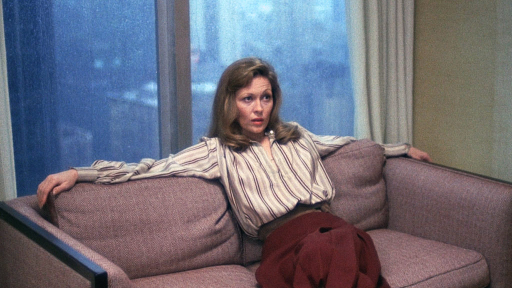In another of the great sequences in the movie, Dunaway and Holden’s characters go off to the seaside for a romantic vacation. It’s all extremely sweet with the sound off, they go for a candlelight dinner, they walk on the beach, they find themselves in their room making love. But if you turn the sound on, you realize that Dunaway is talking the entire time about work and ratings and her new pilots. She orgasms while shouting about getting “more publicity than Watergate” and then, for pillow talk, whispers about winning back daytime from “NBC and its lousy game shows.” Later, when he breaks up with her, Holden’s character calls her “television incarnate.” It is perhaps ironic that the two roles Holden may be most remembered for are this one, in which he plays an older man falling against his will into a romance with a magnetic younger woman, and Sunset Boulevard, where he plays a younger man falling against his will into a romance with a magnetic older woman.