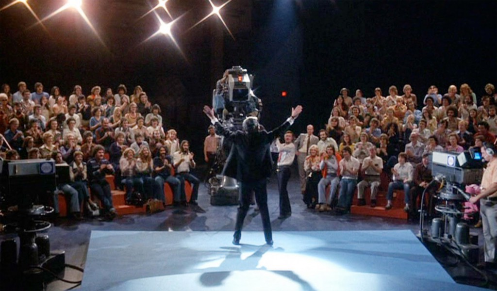 I can testify from personal experience, as someone whose spouse walked in the room in the middle of this movie and asked, “what is happening here?,” that this is a hard movie to actually describe. In essence, Network starts with a network news anchor at the fictional “UBS,” Howard Beale (Peter Finch) getting fired, possibly going insane, and announcing on air that he will kill himself on air in one week. A young female programming executive (Faye Dunaway) seizes on Beale as reflecting the country’s current anger and seems confused by everyone’s reticence to go along with this. Meanwhile, she has an affair with an older news director (William Holden), and tries to get her show about domestic left-wing terrorists (The Mao Tse-Tung Hour) off the ground.
