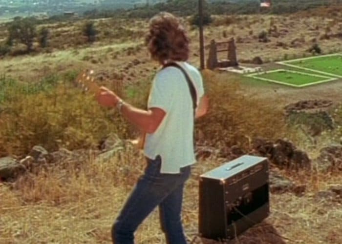 The second half of the movie centers around the cemetery that the animals are moved to, “Bubbling Well Pet Cemetery.” It is owned and run by various members of the Harberts family, the father of which has started his own church that teaches that God loves animals and humans equally. His wife seems to think this is kind of silly, but knows his heart is in the right place. The business is primarily run by their two sons, who both left home and then came back for their own reasons. One is a former salesman and talks about organizing his pick-up runs at vet offices according to “success principles” and has a whole spiel about how he organizes all the awards he’s received for… something? His brother lives in a house on a hill overlooking the cemetery. At one point we just watch him sitting and listening to prog rock. He grows marijuana plants on his windowsill. Sometimes in the afternoons if no one’s around he takes his amp and electric guitar outside and plays above the pet cemetery.