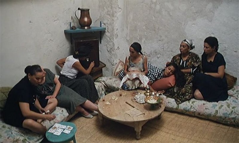 At first, Tlatli’s style feels very understated. She tends to shoot full scenes in medium-shot, without cutting in for close-ups or moving the camera. It is the most basic style of movie. But as Alia grows up and gains more emotional understanding of her situation, so, it seems, does the camera. In one of the most memorable scenes, Khedija breaks down in front of the other women in the kitchen after being raped by one of the men in the palace, screaming that “everything disgusts me! I hate my body!” None of the other women says anything as the camera pans over their faces, which are all lost in thought and concern, and their hands in close-up, which are all continuing to go through the motions of rinsing laundry or kneading bread. And the movie ends on a long shot of just the adult Alia, accompanied by a voiceover in which she decides to keep her baby, and name it Khedija if it’s a girl.