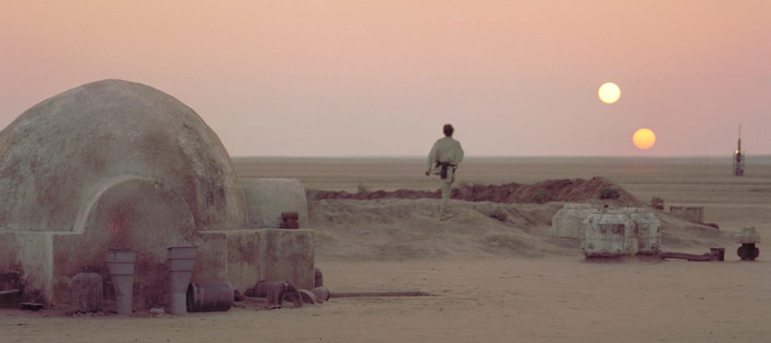 The bit where Luke returns home to find his aunt and uncle dead was inspired by a similar scene in The Searchers. But no one in The Searchers ran around canyons “hiding from natives.” They were trying to find the Comanche, not get away from them.