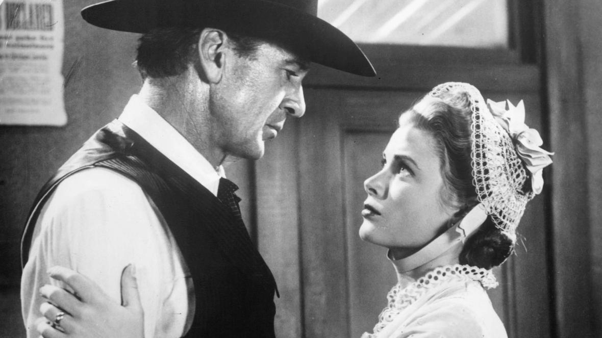 Gary Cooper plays Marshal Will Kane, who as the movie opens marries a pacifist quaker named Amy (Grace Kelly), and is given congratulations by all his friends and fellow townspeople, Kelly was 21 and Cooper was 50 at the time, but the movie doesn’t particularly care about that. Then word comes that Frank Miller (Ian MacDonald), a ruthless outlaw Kane sent to jail for murder, was pardoned and will be arriving on the noon train to meet his gang so they can, you know, murder Kane and stuff. Everyone tells Kane that he should just leave town with Amy as they’d planned, but he says he can’t because of duty and honor. Most of the movie plays out in something approaching real time, as Dmitri Tiomkin’s “Ballad of High Noon” plays over and over and over on the soundtrack, basically describing the plot for some reason. Did movies do this at some point? Because it’s sort of bizarre.