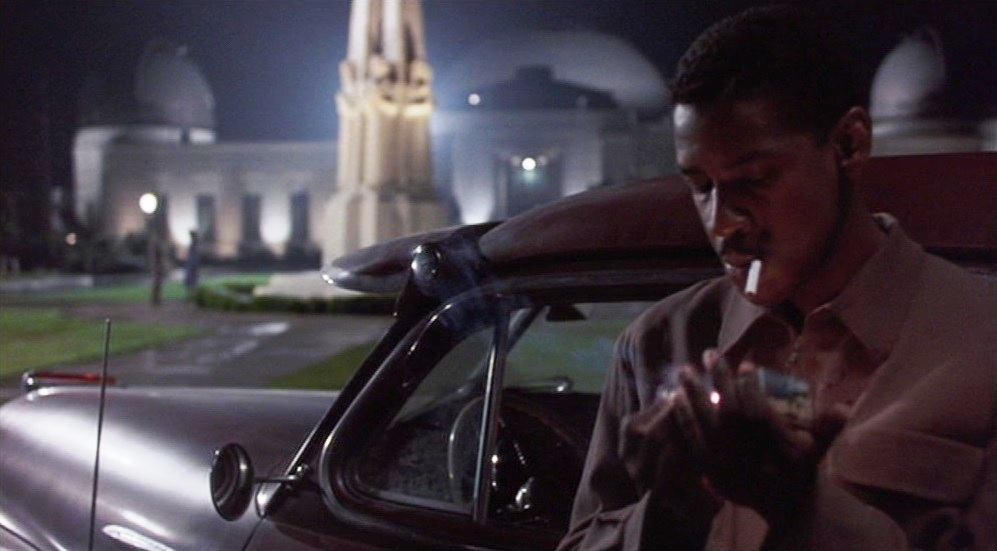 While watching Devil in a Blue Dress, I found myself thinking a lot about the movie Chinatown. Both movies are color neo-noirs set in old Los Angeles, both involve rivalries between various corrupt politicians, and both involve private detective heroes who have absolutely no idea what they’re getting into at the start. More than this, both (major spoilers here) finally make sense of their plots with late, dramatic revelations that two characters are siblings. In Chinatown, that reveal meant that the central mystery was actually about incestual abuse all along. Here, it means that the central mystery has been about one of the main characters being secretly biracial all along.