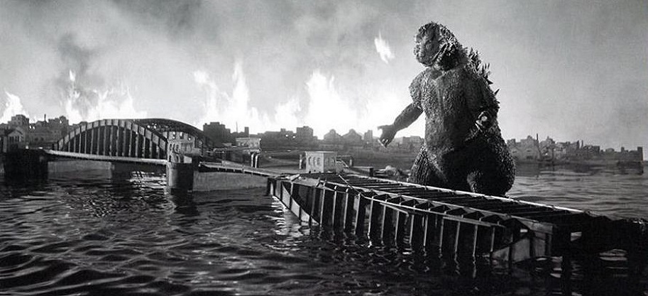 Director Ishirō Honda had served in the Japanese Army for a decade in China during World War II, and was a protégé of Akira Kurosawa. He had planned to director a war film about Kamikaze pilots for his second feature, but legendary Japanese film studio Toho, after the success of a re-release of the original King Kong, as well as The Beast From 20,000 Fathoms (a very fun, if much dumber, movie about a giant squid thing attacking San Francisco, with special effects by Ray Harryhausen), decided that a monster movie was more likely to be a success. Honda accepted the assignment after several other directors turned it down as “stupid,” stating that he had “no problem taking it seriously.” Honda said that he saw the themes of the movie as, “Mankind created the bomb, and now nature was going to take revenge on mankind.” He fully admitted filming the scenes where Godzilla destroys wide swaths of Tokyo, burning skeletons of buildings in the foreground at his feet, to consciously mirror the images of Hiroshima and Nagasaki after the atomic bombings of those cities. Whether this is what Toho had in mind is unclear, but they didn’t complain after the movie was a big success and spawned a franchise.