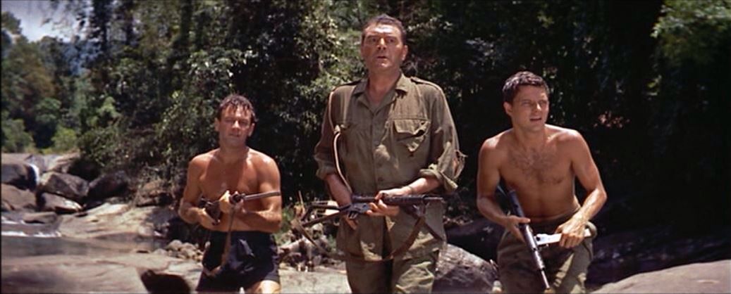 Shot at great expense in Sri Lanka as a British-American co-production, Kwai turned out to be the biggest hit, by far, of 1957, cleaned up at the Oscars, made a major hit out of its famous whistled version of “The Colonel Bogey March” (which was decades old even at the time), and pushed David Lean into the top tier of world directors. The story is fairly faithfully adapted from a recently best-selling novel by the French author Pierre Boulle. Having been in Malaysia at the time of the fall of France to the Nazis, Boulle had been an operative for the Free French resistance before being captured by the Japanese, and forced to work on the railroad dramatized in this movie. While one might assume, based on the fact that they’re the villains of the piece, that the story is biased against the Japanese, in fact both Boulle’s novel and the film leave most of the worst atrocities just off-screen. The Bangkok-Rangoon Railroad has gone down in history as “The Death Railroad,” as up to 300,000 local forced laborers and Allied POWs are thought to have died in truly awful jungle conditions during its construction. The Japanese goal was to allow supplies to get to the front in Burma without having to be carried by sea through dangerous waters around the long, skinny Malay Peninsula. In reality they succeeded, at enormous human cost. For his part, Boulle is today by far best known in the English-speaking world for two novels, both of which are far better known due to the movies made of them. The other, which he wrote over a decade later, is a weird science fiction novel called Monkey Planet, made into a movie as The Planet of the Apes.