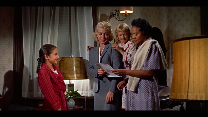 I would not be the first to remark that Sirk seems much more interested in the story of the Black mother and daughter than he is in the ostensible “A” story with the white mother and daughter. He even admitted later that he was basically using the “mainstream” part of the story to sneak in the story he wanted to tell, about Annie and Sarah Jane. This may be borne out by the fact that Imitation of Life’s only two Oscar nominations were for Moore and Kohner. In its frank discussion of racial issues in the relationship between these two characters, it feels far ahead of its time, and this is certainly the element that will catch the attention of viewers today.