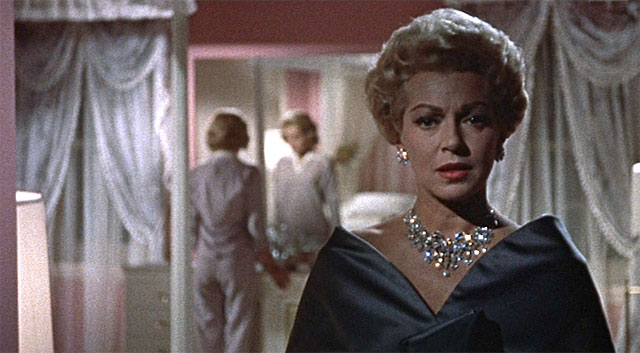 This is also a surprisingly modern movie in a #MeToo sense. Lora’s initial forays into acting and modeling are so beset with surprisingly frank sexual harassment, particularly from an agent named Allen Loomis (played by Robert Alda, Alan Alda’s father), that it initially discourages her until she starts to take more control of her own destiny. Her character’s success in the Broadway world allows Sirk to put Turner into some of the most expensive dresses and jewels ever seen in a movie. He was known for his over-the-top costumes and interiors, which he is again using to underline how silly all of this 1950s materialism actually is.