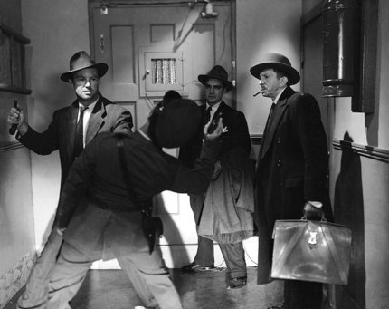 Doc (Sam Jaffe), who has a studious manner, glasses, and a German accent, gets out of prison with a plan to steal a million dollars’ worth of jewelry. He goes to a local lawyer and known fence (Louis Calhern) for funding. His team includes a safecracker (Anthony Caruso) and a heavy (Sterling Hayden), in case anyone needs to be beat up. Hayden’s character, Dix, is the closest thing the movie has to a hero. He is desperately sick of this run-down town and just wants to make enough money to buy back the family horse farm in Kentucky. He is mostly clueless as to the advances of the somewhat pathetic “Doll” (Jean Hagen, best known for playing the screech-voiced Lina Lamont in Singin’ in the Rain), who is also looking for someone to save her from this pointless life, it seems.