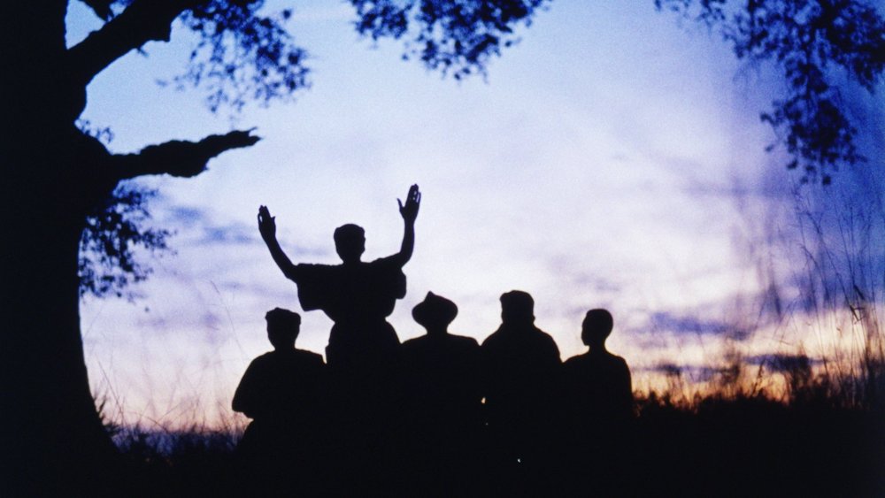 In one of the movie’s most affected affectations, there is sporadic narration by “the Unborn Child” (Kay-Lynn Warren) who seems to be a future child of two of the characters. She occasionally appears running through the edges of the frame, then disappearing. She sprints in front of a group photograph of the men of the community, but when we actually see the photo she’s not there. She is the continuity from the ancestors to the future. Or something.