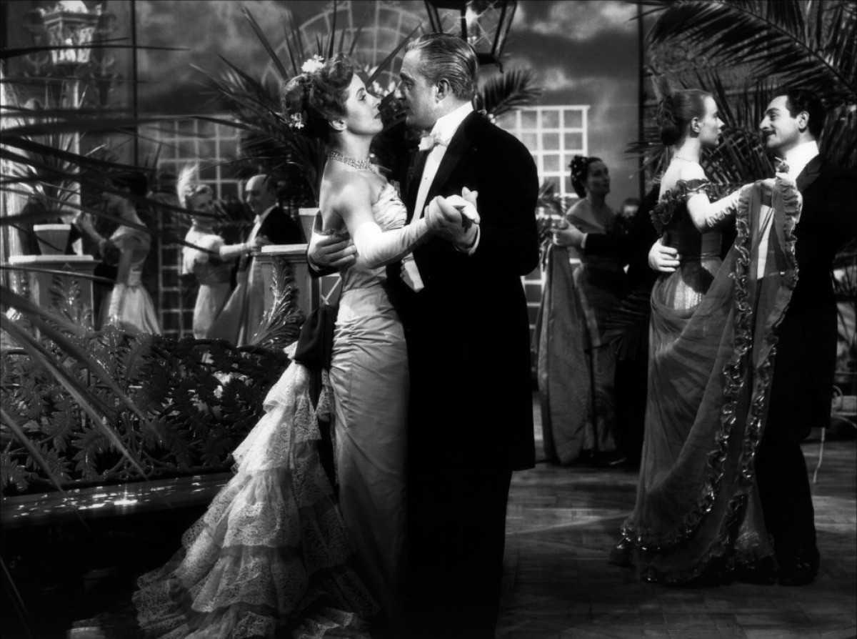 What might simply sound like stylistic quirks are actually some of the most important aspects of The Earrings of Madame de… In one scene, for example, Louise (played by Danielle Derrieux) and her lover Baron Donati (none other than the great Italian director Vittorio De Sica, who as I’ve written about previously was an actor before he started directing) dance for the first time. The camera follows them all the way around a large dance floor in a shot that would be extremely technically difficult even in the modern day, much less in 1953. Then we fade into several other nights of dancing, indicating the passage of time, until the pair is just dancing on their own as the servants clean up. It is a scene that no other director could have made except for Ophuls.