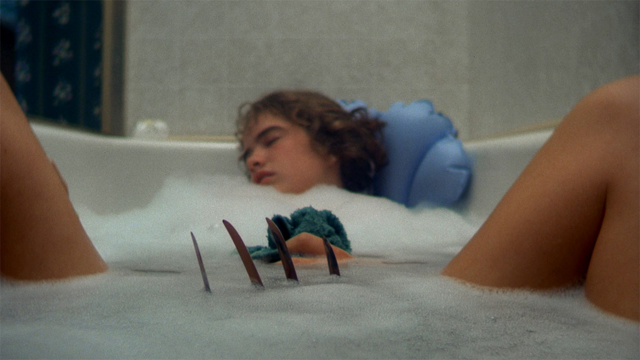 The movie’s next most spectacular death scene is given to none other than Johnny Depp, playing Nancy’s boyfriend, in his first movie role. Shot using the same basic set, he is suddenly sucked down into his bed, at which point an incredible fountain of blood spurts up in a geyser from the bed, coating the ceiling and walls of his room. There is so much blood, in fact, that the special effects people lost control of it and the movie set was flooded. One interviewee in a recent documentary I watched recalled someone yelling “Run!” and the crew scattering as they fled from the onrushing fake blood. Anyway, for me Depp gives probably the least interesting of the movie’s major performances, but he was the one of the cast who would become a major star. The two main adults, meanwhile (Nancy’s estranged parents), are played by John Saxon, last seen on this blog being co-top-billed with Bruce Lee in Enter the Dragon, and Ronee Blakley, who played the doomed country princess in Nashville.