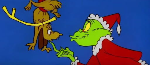 How the Grinch Stole Christmas! is only 25 minutes or so long and has several musical interludes, which is to say there isn’t much to it from a plot perspective. The Grinch is a green furry monster thing who lives up on a mountain above “Whoville,” where all the Whos live, and he wants to stop them from having Christmas because they are super loud and annoy him, so he dresses his silly dog Max up as a reindeer and breaks into everyone’s houses in a Santa outfit for the purpose of basically reverse Santa-ing them and taking all their decorations and presents. But when he sees that, despite all this, the Whos still seem happy. His “heart grew three sizes that day,” we hear, as he realizes that maybe “Christmas isn’t about presents or boxes or bags.” Then he joins in the town Christmas celebration, including carving the “roast beast.” So basically it’s the story of a man ostracized by society who just wants to be left alone.