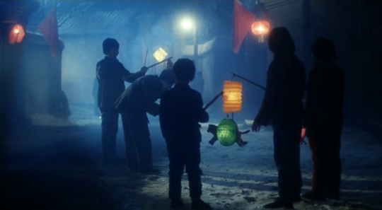The message of The Blue Kite is not subtle, and though there are many moments of joy throughout, as a whole the experience is a pretty massive downer. The movie starts with happy scenes from a wedding, with lots of bright colors. By the end, the palette is mostly muted blues. It is the story of a seemingly normal and joyful family experience being inexorably beaten down and drained of everything worthwhile by greater, inevitable, faceless societal forces, through absolutely no fault of any of our characters. This is different from, for example, many Holocaust narratives, which are often, to at least some degree, a meditation on how humans could do such evil things. In The Blue Kite, the people setting these forces in motion are completely off-screen. It is basically the equivalent of watching people suffer a long series of natural disasters.